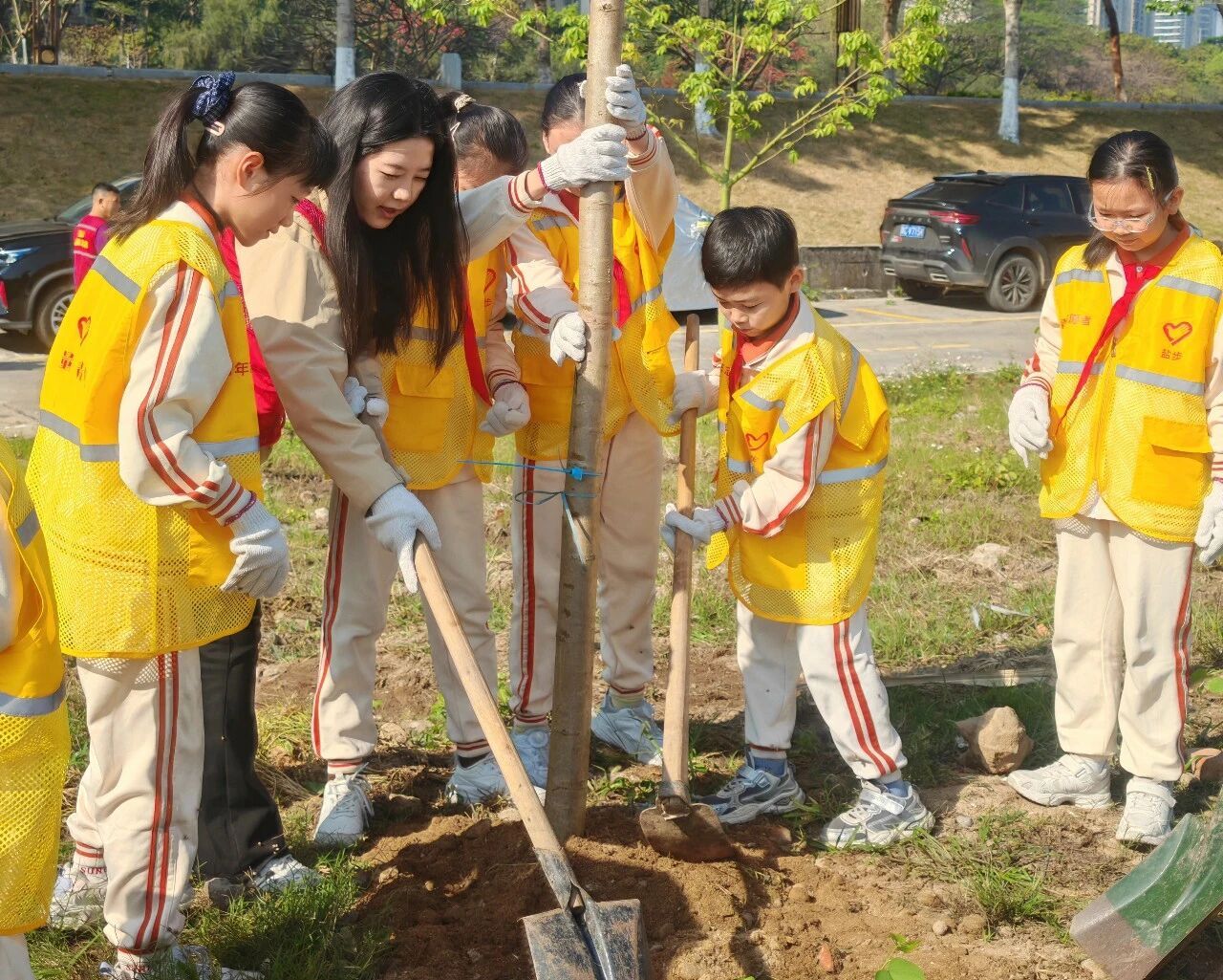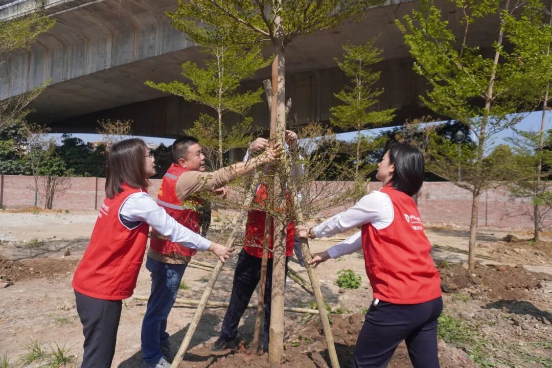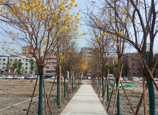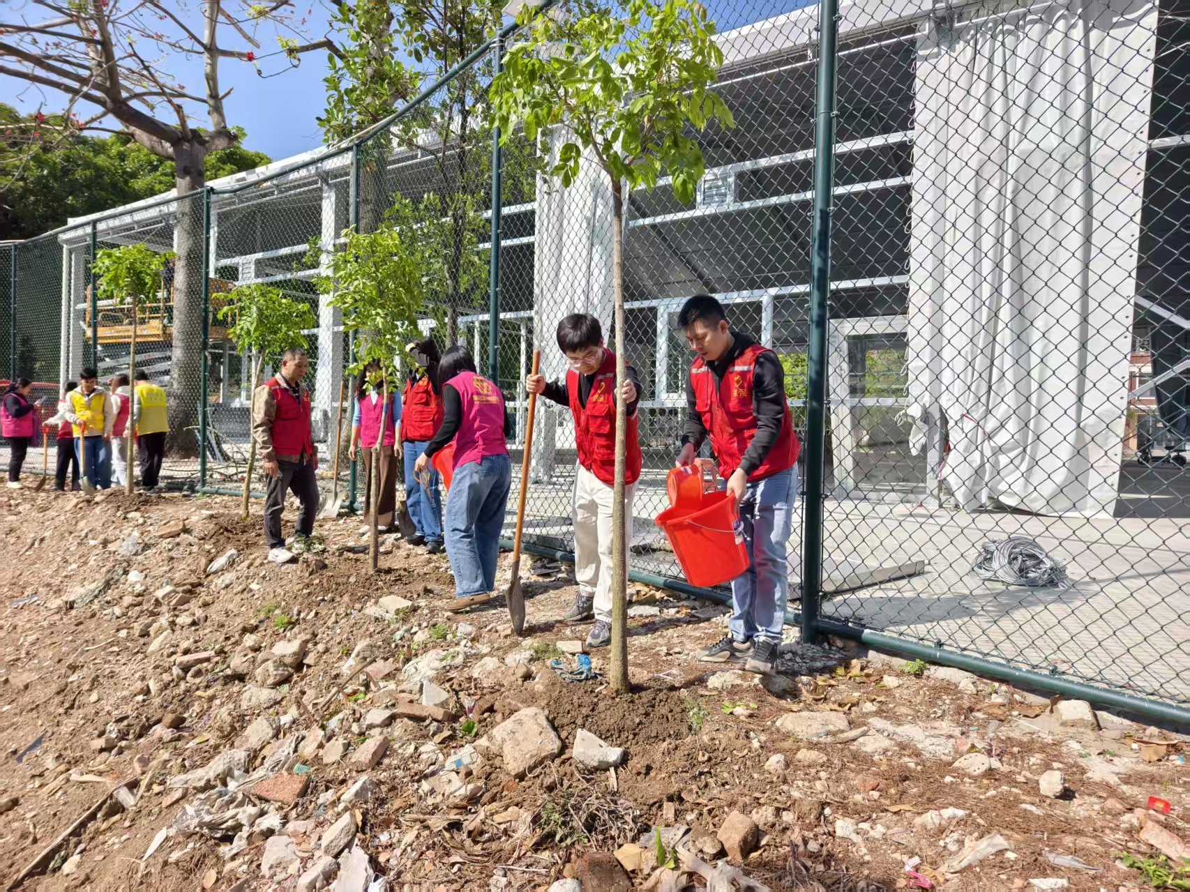 联安社区在隔海田公园组织植树,沿道路两旁种植宫粉紫荆、黄花风铃木、无忧树等优质苗木140余株,在美化环境的同时推动“绿美经济”发展,寻求生态与经济效益的双赢。